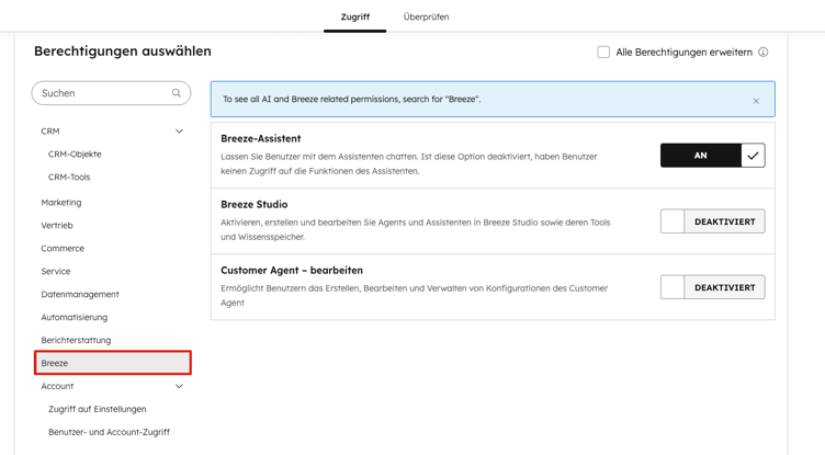 - Berechtigungen anpassen: Über die Benutzer- und Teameinstellungen legen Sie fest, wer welche spezifischen KI-Funktionen nutzen darf. So stellen Sie sicher, dass nur geschulte Mitarbeiter Zugang zu bestimmten Tools erhalten und Missbrauch verhindert wird.