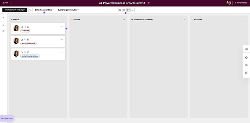 Bisher war Kampagnenmanagement in HubSpot oft abstrakt. Man verknüpfte Assets über ein Dropdown-Menü mit einer „Kampagne“. Im Marketing Studio wird diese Verbindung sichtbar. Für Marketing-Teams bedeutet das: Weniger Abstimmungsrunden, weniger Fehler und ein deutlich schnelleres Time-to-Market.